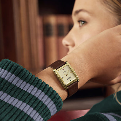 This enchanting update to our minimalist Hailey watch brings the wonder of Hogwarts to the everyday with four crystal markers in the house colors of Gryffindor, Hufflepuff, Ravenclaw, and Slytherin.