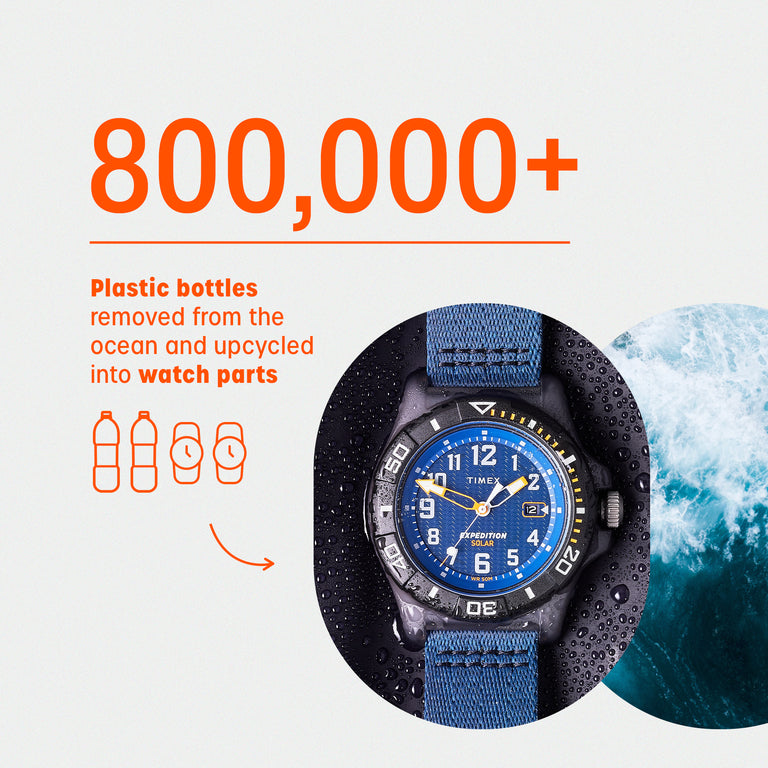 Plastic waste is upcycled into our eco-friendly watch parts rather than ending up in our oceans and landfills.