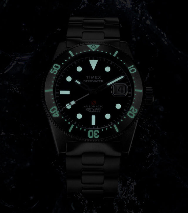 Merging resilience and elegance with crucial functions for underwater pursuits, our Deepwater Reef 200 Titanium Automatic is expertly engineered to venture deeper. Built with a durable and lightweight 41mm titanium case, fortified with a screw-down crown and screw-on case back, it effectively keeps water out and offers 200m of water resistance. It's powered by a Miyota 8215 21-jewel Japanese automatic movement, and we’ve equipped it with a scratch-resistant sapphire crystal with anti-reflective coating, a date window with a magnifier for enhanced visibility, a unidirectional bezel, and Super-Luminova® in-fill on the hands, hour markers, and bezel to provide the luminosity you rely on as you explore beyond the edge. Enjoy durability and style both in and out of the water with a fully brushed titanium bracelet that ensures durability without added weight.Specifications