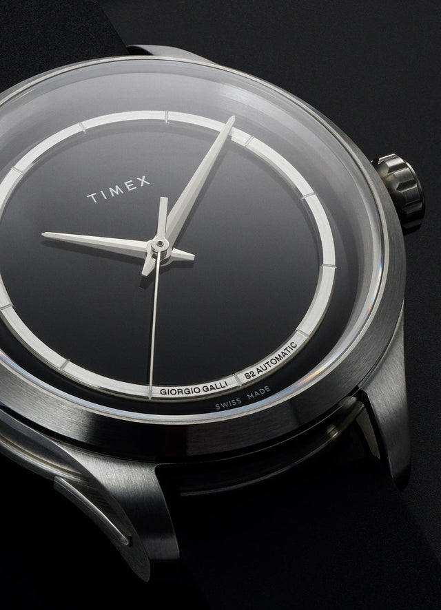 "The Giorgio Galli S2 is a boundary-pushing step towards the future, combining rich minimalism with the precision and expertise only found at the Timex Group Atelier in Switzerland.At the heart of the S2 collection lies a remarkable 38mm injection-molded stainless-steel 316L skeleton case that forms the foundation and allows for a complex construction of inserted titanium on both the case back and center insert. The dial is encased in a domed sapphire crystal with anti-glare coating and features stainless-steel hour markers that create a captivating visual aesthetic. Adding to its allure, a transparent case back offers a glimpse into the intricate automatic movement, revealed beneath a sapphire crystal.
