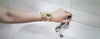 Wrap a garment measuring tape snuggly around your wrist just below the wrist bone. Alternatively use a piece of string and then measure the string length with a ruler. The average wrist size for men is 6.5-7.5", and for women is 5.5-6.5".