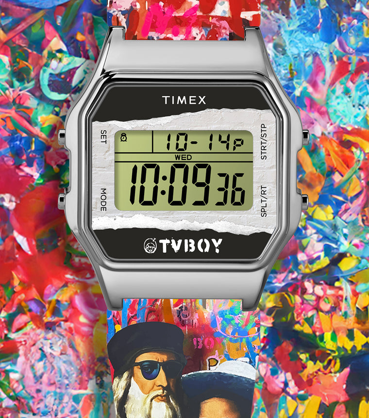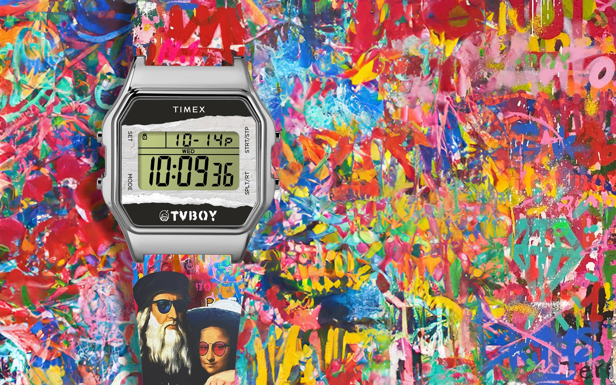 We turned to Italian street artist TVBOY to flip the script on tradition and bring you a bold update to our digital T80. Featuring artwork pulled from his “History of Art - Oil” series, this timepiece is a love letter to art, irony, and the timeless power of thought-provoking design. Titled “Leo & Lisa,” the artwork adorning the resin strap remixes Italian Renaissance romance with loud color, spray-painted elements, and TVBOY’s signature grit, reframing classic love for a modern world. This fun timepiece includes all you’d expect from our T80: a chronograph, daily alarm, day and date display, and of course our INDIGLO® backlight for nighttime visibility.Specifications