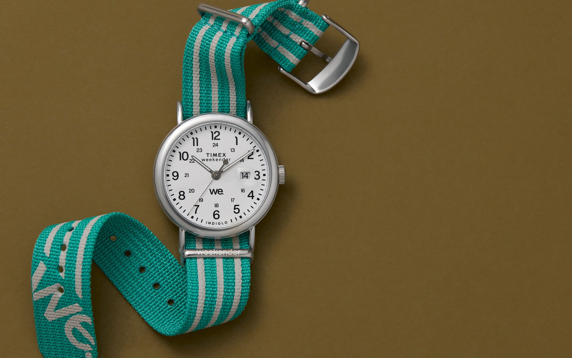 This update to our beloved Timex Weekender brings advanced functionality to this easygoing classic with a chronograph movement for tracking elapsed time. The 40mm case is thoughtfully crafted from stianless-steel, and on the clean white dial, you’ll find luminant hands, simple stick markers, and bold Arabic numerals at 12 o’clock; because sometimes, the best details are the simplest ones. True to the Weekender’s laid-back, everyday style, the slip-thru strap design makes swapping styles simple, with an eco-friendly recycled plastic fabric strap that’s ready for whatever the day brings. And on the crown, you’ll find the iconic “we.” logo of the Timex Weekender as a reminder that any boring old day can become unforgettable if it’s spent with our favorite people.Specifications