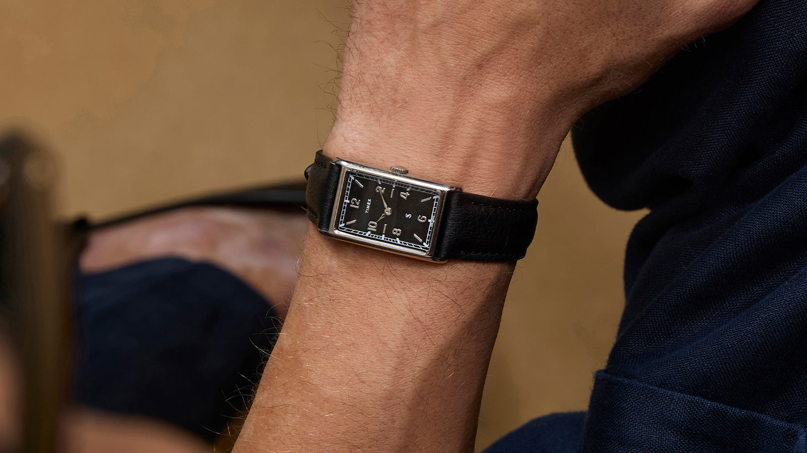 The Timex 1976 Lexington returns in colors pulled straight from American menswear designer Todd Snyder’s Spring/Summer runway show with this handsome update inspired by the original. Its slim 21mm rectangular case delivers a contemporary silhouette that keeps in line with the era of sharp tailoring and personal expression—and thanks to its thoughtfully modest size, it feels right at home on any wrist. The black dial has been updated with more modern numeric style numerals for improved legibility. A raised flat crystal completes the vintage profile, perfectly balanced by a supple black matte leather strap. Confident yet understated, it’s a unisex watch designed for moments when every detail matters.Specifications